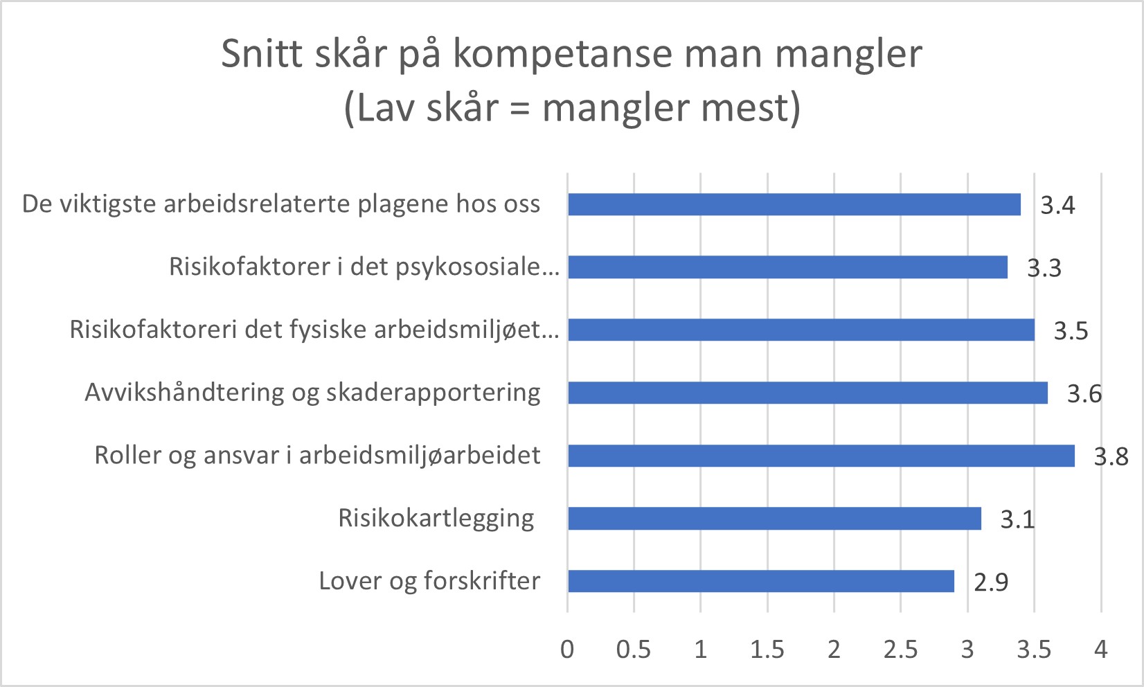Svaret er kunnskap om lover og forskrifter, og om risikokartlegging. På tredjeplass bakfra kommer kunnskap om arbeidsrelaterte plager. Det er altså nok å ta tak i.